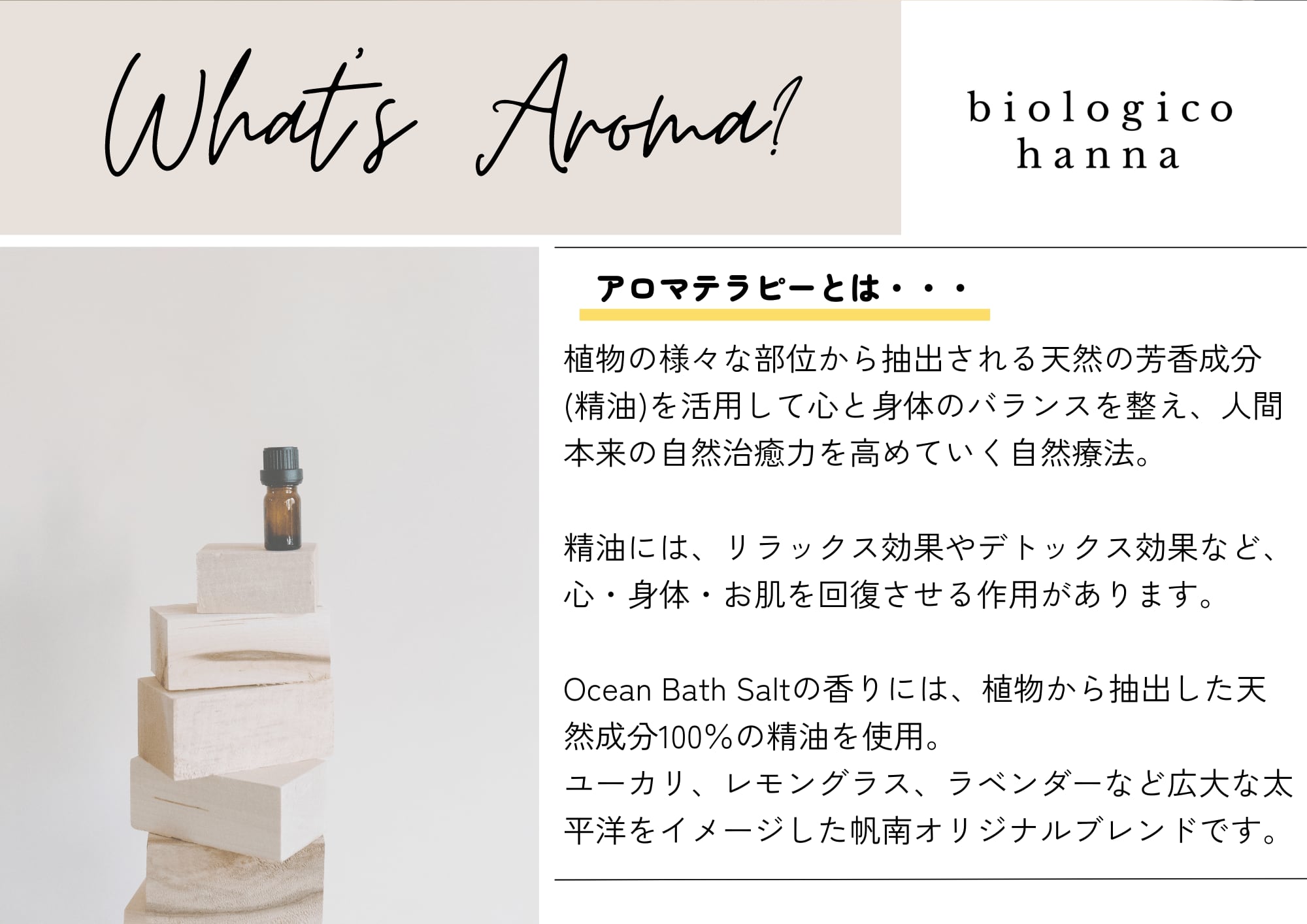 Ocean Bath Saltにも100%天然成分の精油を使用しています。
